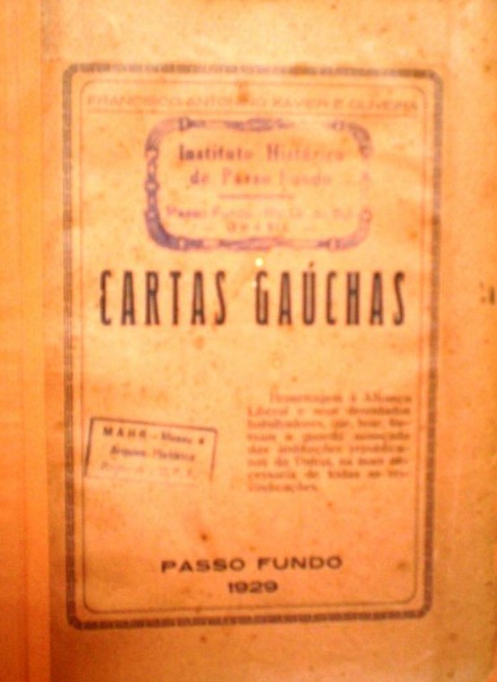OLIVEIRA, Francisco A X.; Cartas Gaúchas -Passo Fundo: (NI). 1929, páginas,