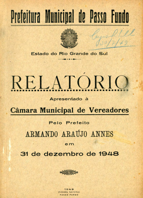 PREFEITURA MUNICIPAL DE PASSO FUNDO. Relatório. Passo Fundo: Livraria Nacional, 1949.