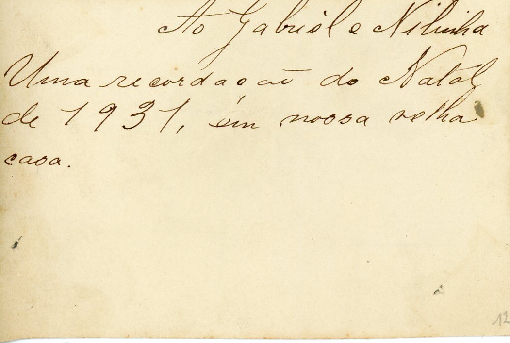 No verso consta a inscrição "Ao Gabriel e Nilinha