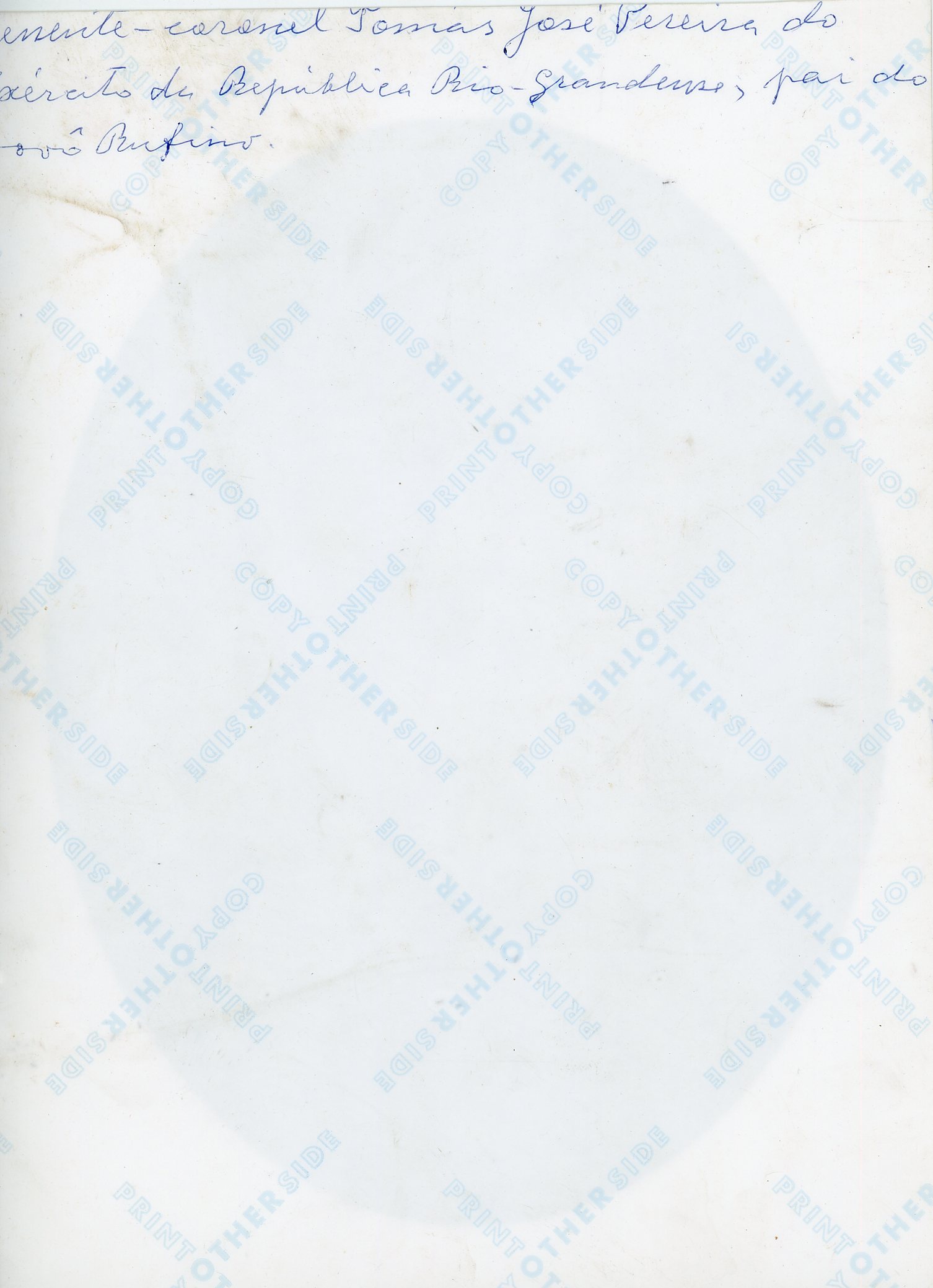No verso consta a inscrição "Tenente - coronel Tomás José Pereira do exército da República Rio - Grandense, pai do vovô Rufins.