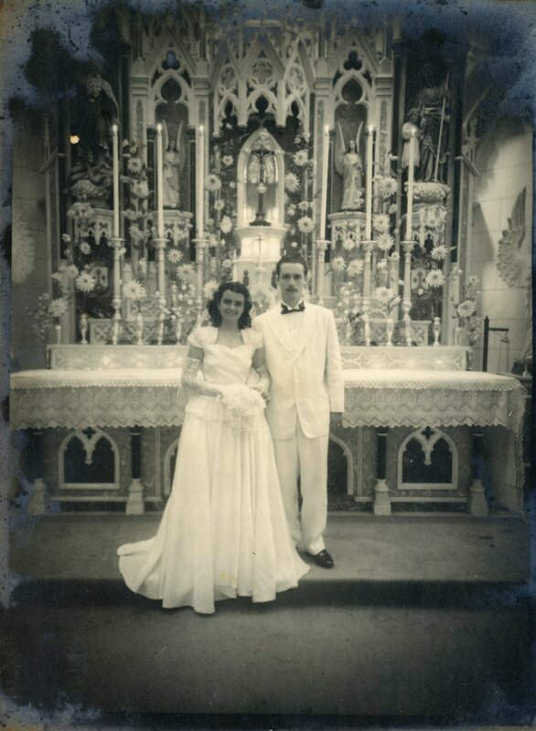 Retrato de casamento de figura masculina e feminina não identificadas.