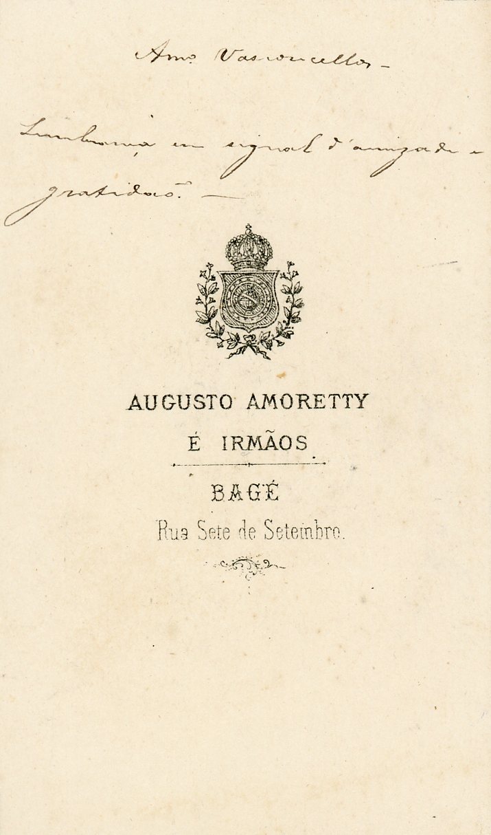 Bagé. Também consta a inscrição, "Amigo Vasconcellos
