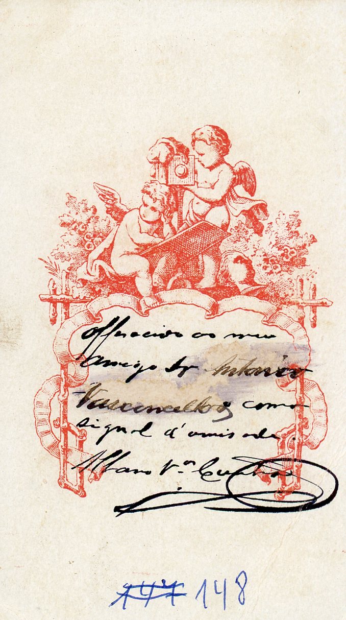 No verso observa-se um carimbo. Consta ainda a inscrição "Oferecida ao meu amigo senhor Antonio Vasconcellos como signal a amizade. Alano Vieira da Cunha"
