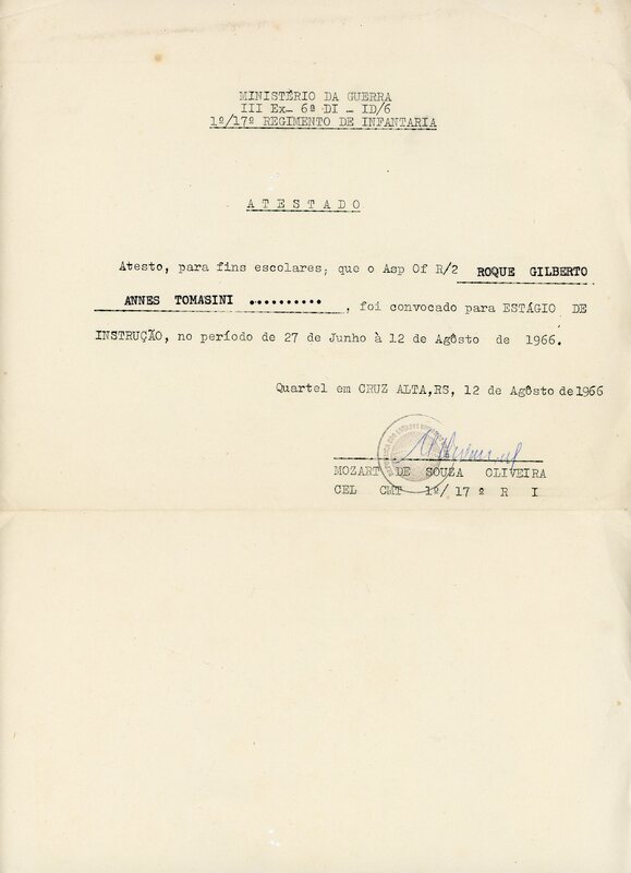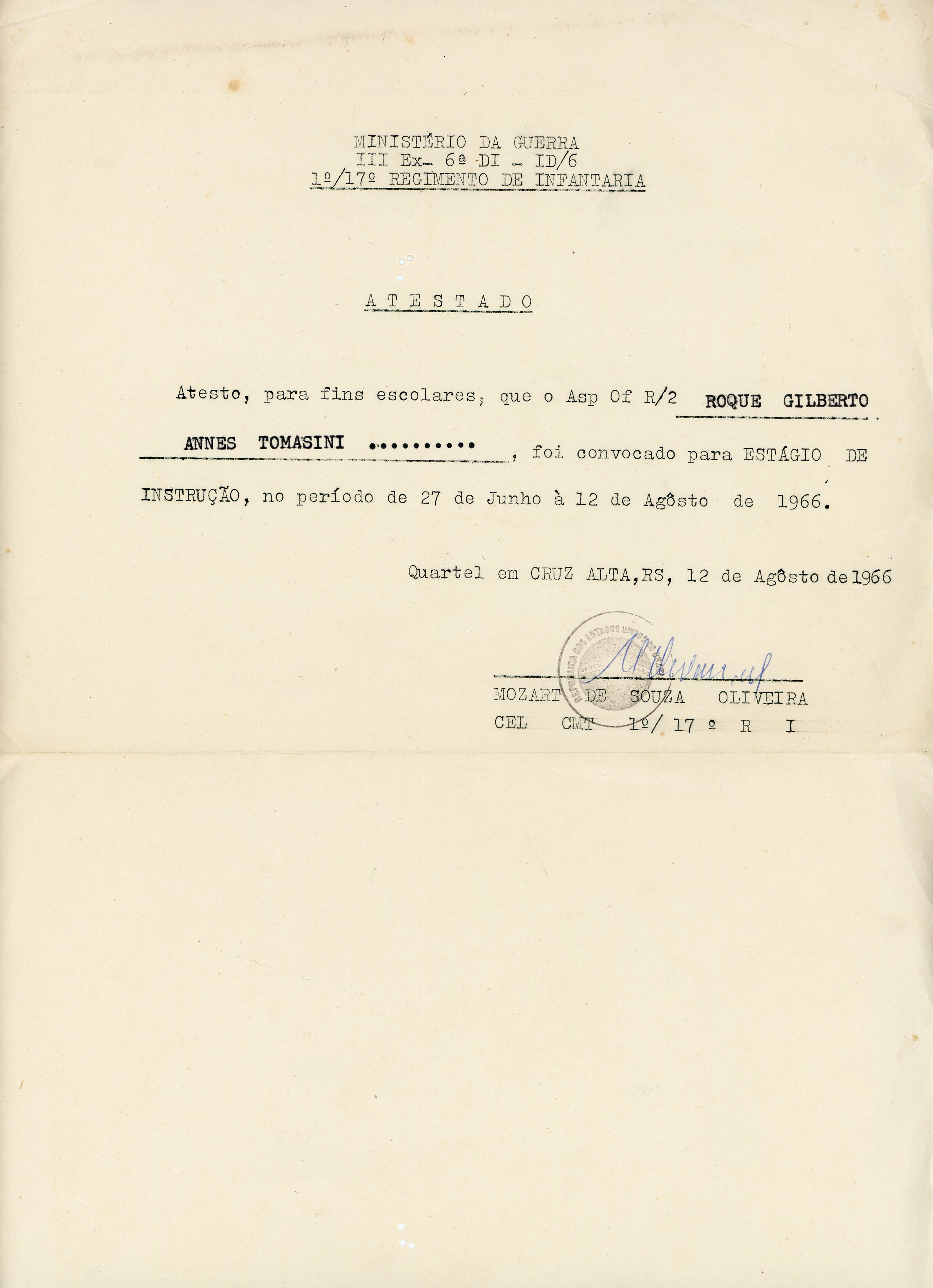 Atestado de Estágio de Instrução, 1º/17º Regimento de Infantaria